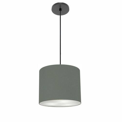 Luminária Pendente Vivare Free Lux Md-4107 Cúpula em Tecido - Cor: Cinza-escuro | Cor da Canopla: Canopla preta e fio preto
