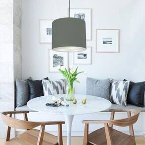 Pendente Moderno Indicado para decoração área interna, como mesas, sala de estar, sala de jantar, suíte, quartos, corredor, hall, mezanino, escadas, churrasqueira, lareira, área de circulação, lojas, comércios, restaurante, varanda, balcão, com opção de cor de canopla em preta, branca e cinza