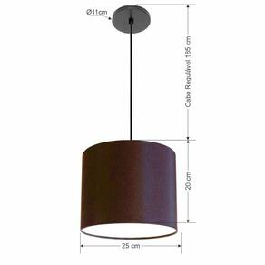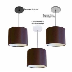 Luminária Pendente Vivare Free Lux Md-4107 Cúpula em Tecido - Cor: Café | Cor da Canopla: Canopla preta e fio preto