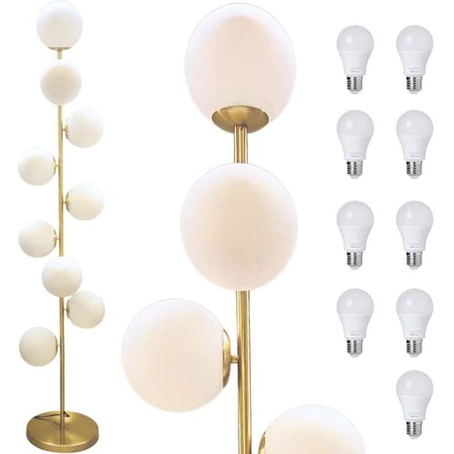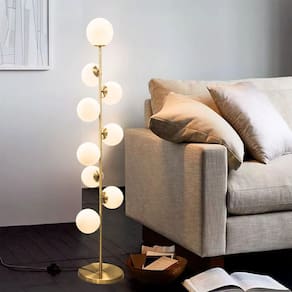 Luminária Piso Chão 162cm Jabuticaba 9 Globos Vidro Dourada KJTD-714-GOLD + 9 Lâmpadas 9W LED Bivolt 1 Luminária de Chão 162cm Jabuticaba 9 Globos Gimpo KJTD-714-GOLD. + 9 Lâmpada LED 9 Watts 6500K 803 Lumens Bivolt Base e Estrutura Metálica Dourada. Globos de Vidro 15cm. Fiação embutida. 9 Soquetes E27, até 60 Watts cada. A Luminária de Chão Piso Coluna Pedestal KJTD-714-GOLD + 9 Lâmpadas LED 9W Bivolt da Gimpo é elegante e sofisticada. Transforma o ambiente com uma atmosfera de organicidade e leveza única. É a solução perfeita para os mais distintos projetos de iluminação. Com um design orgânico e contemporâneo, inspirado na beleza da fauna e das árvores Jabuticabeiras do Brasil, os frutos, as jabuticabas, em fusão com a arte, são expressadas pelos 9 globos de vidros brancos ao longo da estrutura metálica dourada. Se destacam, desse modo, por um desenho autêntico e diferenciado. Une beleza e funcionalidade. Natureza e modernidade. Uma peça delicada e funcional para iluminar ambientes e transmitir bem-estar com iluminação de qualidade. Mede 162cm de altura x 34cm de largura. A base de 28cm com tampo metálico pesa 2,5kg e garante o suporte necessário para firmeza e estabilidade da luminária. Conta também com antiderrapante na sua porção inferior para maior segurança e evitar riscos no chão. A estrutura metálica é robusta e tem 2cm de espessura. Ao todo são 9 globos de vidro brancos com 15cm de diâmetro e os 9 soquetes já instalados são E27 até 60 Watts cada . Por conta dos globos serem brancos foscos leitosos, a luz é distribuída uniformemente, de modo suave e agradável aos olhos, e cria um ambiente aconchegante e confortável. O fio é embutido na coluna e sai próximo à base. A cor da fiação é preta e tem 150cm de comprimento a partir da base. O é de acionamento no pé, bastando pisar para ligar ou desligar. A instalação é simples e dispensa qualquer ferramenta, necessitando somente rosquear as peças, manualmente, umas às outras. Perfeita para salas, locais de estudo, escritórios, quartos, cabeceiras, banheiros, sofás, estúdios, clínicas, home offices, restaurantes, bares, cafés, salões, entre outros espaços. Adapta a uma variedade de estilos, desde o minimalista e contemporâneo até o retrô, industrial, rústico, escandinavo, Art Nouveau, high tech, nórdico, urbano e étnico. A escolha ideal para quem busca soluções de iluminação elegantes e diferenciadas. Luminárias Gimpo. Elementos de beleza que transformam decorações. Especificações: 1 Luminária de Chão 162cm Jabuticaba 9 Globos Gimpo KJTD-714-GOLD. 9 Lâmpadas LED 9 Watts 6500K 803 Lumens Bivolt Kian Material: Metal e Vidro. Cor da estrutura: Dourado. Medidas da estrutura: 162cm altura x 34cm largura. Coluna composta por 5 hastes. Cor da base: Dourado. Peso da base: 2,5kg. Medidas da base: 28cm diâmetro x 3cm altura. Globos de vidro: 9, cor branco fosco leitoso. Medidas do globo: 15cm diâmetro. Abertura inferior do globo: 6cm diâmetro. Soquetes: E27 até 60 Watts cada . Total de soquetes: 9 já instalados . Fiação elétrica: 1,50m. de pé a 60cm da base. Fio embutido. Saída do fio a 3cm da base. Cor do fio: preto. Plugue: tomada padrão brasileiro 2 pinos. Corrente elétrica: Bivolt 110v / 220v . Se usar lâmpadas 110v, ligar rede 110v. Caso lâmpadas 220v, conectar à energia 220v. Se lâmpadas bivolt, aceita ambas voltagens. Medidas da caixa: 111cm x 53cm x 33cm. Peso total: 7,5kg. Modelo: KJTD-714-GOLD-9W. EAN: 7898680306573. Marca: Gimpo. : 3 Meses. Sempre verifique a cor do produto ANTES de concluir a compra. Não fazemos alterações posteriores em pedidos. Imagens do anúncio são ilustrativas.