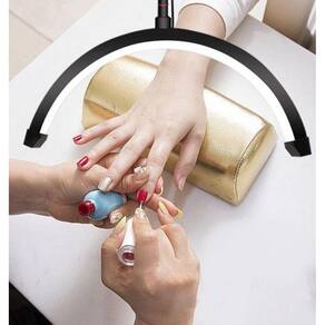 Luminária LED - estética Proporciona um visual limpo e para sua estação de trabalho. Luminária meia lua: - Material da luminária: ABS e Alumínio - Diâmetro da meia-lua: 41,5 cm - Acompanha presilha universal para celular.Abertura máxima da presilha: 58 mm - Controle com função Liga/Desliga, ajuste de temperatura, aumento/redução de brilho. - Ajuste de temperatura: 3000-6000K - Lúmen: 1700 lm - Potência: 20 W - Número de LEDs: 180 - Voltagem: Bivolt 110-240V 50HZ/60HZ - Cor: preto Suporte: - Tipo: Articulado 35 cm X 35 cm - Base: tripé - Altura da haste central do suporte: 74 cm - 128 cm Comprimento da haste articulada superior do suporte: 70 cm 35 cm X 35 cm - Rotação 360 na base da haste. - Material: Aço - Cor: preto Marca: Não Informado