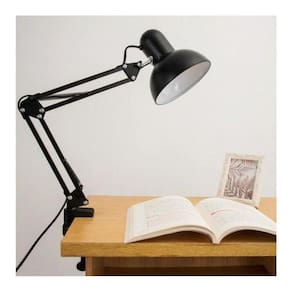 - Luminária de mesa com articulações para direcionar o foco de luz.