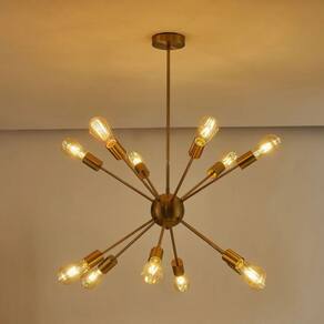 Este pendente se destaca pela sua capacidade de iluminacao abrangente, gracas as suas 12 bocas, que permitem a instalacao de lampadas de alta potencia, assegurando claridade sem comprometer a estetica. A durabilidade e outro ponto forte, com materiais selecionados para garantir a longevidade e a manutencao do brilho dourado ao longo do tempo. Sua montagem e pensada para facilitar a instalacao em diferentes tipos de tetos, oferecendo versatilidade para diversos projetos de decoracao. A distribuicao das lampadas foi cuidadosamente planejada para evitar sombras indesejadas e maximizar a difusao da luz, promovendo um ambiente acolhedor e bem iluminado.