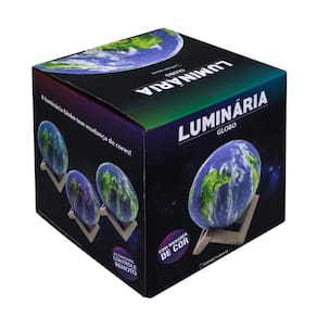 Luminária Planeta Terra Com Suporte 15X15Cm A luminária tem mudança de cores Especificações Técnicas: - Altura: 15cm - Comprimento: 15cm -largura: 15c - Peso: 385 gramas Contém: 1 luminária, 1 base, 1 controle remotoe 1 cabo USB. Funciona com 3 pilhas AAA não inclusas ou via USB. Ean: 7908011761664