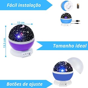 Transforme o quarto dos pequenos em um espetáculo cósmico com a luminária projetor led infantil céu lua e estrelas giratória da gps online star master. Com tecnologia led, este globo projetor ilumina o ambiente com uma exibição encantadora de estrelas, lua e constelações, girando suavemente para criar uma atmosfera mágica e relaxante. Ideal para estimular a imaginação e a curiosidade sobre o universo, este projetor é perfeito para festas do pijama, noites de histórias ou simplesmente para ajudar a adormecer sob um céu estrelado.