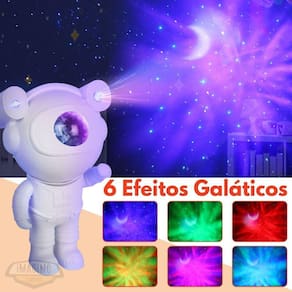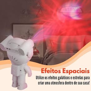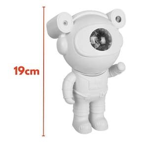 Luminária Projetor Imagem Espacial Astronauta Som Bluetooth Cor da Estrutura: Branco Cor da Cúpula: Branco Voltagem: Bivolt Transforme seu espaço em um universo de encanto com o Projetor de Imagem Espacial Astronauta Com 6 imagens de nebulosa predefinidas e efeitos de luz laser que simulam estrelas, você se sentirá imerso em um cenário celestial. O formato de astronauta traz um toque único e divertido ao ambiente. A cabeça do astronauta vira 180º, permitindo ajustes de projeção ideais.