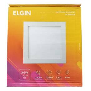 Luminária Quadrada De Embutir Led Elgin - 24w - 2700k Luz Branco Morna Potência: 24WTensão de Entrada: 100 - 240VDimensões: 29,2 x 29,2 x 2,8cmNicho: 28 x 28cmCorrente (127/220V): 378mA / 218 mATemp. de operação: -20C ~+40CIRC:>70Frequência: 50/60HzTemperatura de cor: 2700kFluxo Luminoso: 1920lmEficiência luminosa: 80lm/WGrau de Proteção: IP20 A imagem do produto é ilustrativa e pode variar de tonalidade e cor de acordo com a configuração de cada monitor.Os objetos que compõem a foto ambientada não acompanham o produto.Fotos meramente ilustrativas.