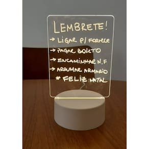 A Luminária 3D de Escrever Abajur Tipo Lousa é muito mais do que uma simples fonte de luz é uma peça de decoração que traz um efeito visual incrível para qualquer espaço. Com seu design moderno e elegante, esta luminária cria uma ilusão óptica 3D, tornando-se o destaque perfeito para sua casa, escritório ou eventos especiais.