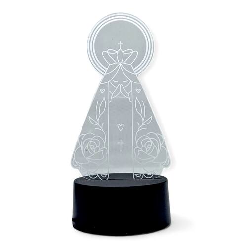 Transforme qualquer ambiente com a luz suave e acolhedora da Luminária da Nossa Senhora, uma peça que une fé, beleza e tecnologia. Com design moderno e acabamento delicado, ela é perfeita para criar um cantinho de oração, decorar o quarto ou presentear alguém especial.