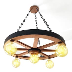 Transforme a sua decoração com a Luminária Roda de Carroça 5 Bocal 65 Cm 110/220V Kit 4 Peças. Esta peça única e encantadora é perfeita para iluminar e decorar diversos ambientes da sua casa, como áreas de garagem, churrasco, garagens com bar, casa de campo, festas e muito mais.