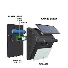 Com 30 leds de alta qualidade, essas luminárias são muito fáceis de usar. Basta fixá-las na parede e utilizar o botão power para ativá-las. Quando o ambiente está escuro, elas acendem automaticamente e, após um tempo sem captar movimento, desligam-se. Durante o dia, elas carregam utilizando a luz do sol, garantindo um funcionamento eficiente e econômico.