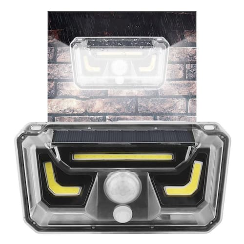 A luminária é alimentada por energia solar, ou seja, os sensores fotovoltaicos acoplados à peça convertem a luz do sol em energia elétrica, carregando as baterias internas, mantendo-a acesa após o sensor de movimento captar aproximação.