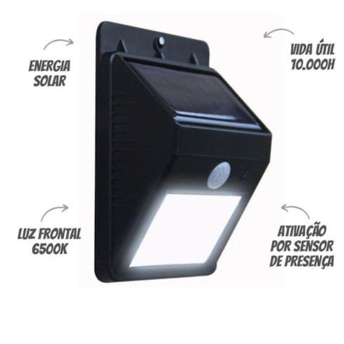 Luminaria Solar Led Luz Automática Sensor De Presença Ip67 Conteúdo da embalagem: 1x Luminária Solar 30 Led Com Sensor 6w Jardim Prova D'água --------------------- BIG BOOST ------------------------ Luminaria Solar Led Luz Automática Sensor De Presença Ip67 **** LUMINÁRIA SOLAR 20 LED COM SENSOR DE MOVIMENTO ****A LUMINÁRIA SOLAR é a solução ideal para o seu ambiente. Graças a placa de energia solar não é necessário puxar fios ou ligar o aparelho na tomada para funcionar, basta fixar em um ambiente externo que ela já está pronta para uso. Contém 20 LEDs de alta potência na cor branca que garantem uma excelente iluminação. O sensor de presença inteligente ativa a luminária automaticamente assim que percebe a presença de alguém no local. A luz só acendera quando estiver em um ambiente escuro, dessa forma ela não aciona quando o ambiente está claro, para não gastar a bateria. - Luminária solar para jardim e ambientes externos- Placa de energia solar- 20 LEDs de alta luminosidade- Sensor de presença automático- Resistente a água - IP67- Fácil de instalar, não é necessário puxar fios ou ligar na tomada- Pode ser fixada na parede através da bucha e do parafuso que vão dentro da caixaESPECIFICAÇÕES:- Potência: 0,55 Watts- Material: Plástico ABS- Sensor de luz Solar de Energia: 2,4 Watts, 270 lumens- Fonte de energia: Solar- 20 LEDs SMD 2835- Bateria: 3. 7 V 18650 1200 mah- Painel Solar: 6 V/1 W- Nível de proteção Prova dágua: IP67- Distância de detecção: 3 m- Autonomia de iluminação: Até 4 horas- Tempo de vida do LED: 50000 h - Tipo de instalação: Fixado Na Parede- Sensor de movimento ângulo: 120º- ON/OFF- Tamanho do produto: 124x95x48mm- Peso: 0. 15 kg- Tamanho do produto: 12,4 x 9,5 x 4,8 CM A, L, P CONTÉUDO:- 01 Luminária Solar- 01 Bucha- 01 Parafuso- 01 Manual marca: import modelo: 100 SMD unidades por embalagem: 1 capacidade de lampadas: 100 tipos de fontes de luz: LED lugares de montagem: Parede,externa,solar,para muro,para faichada materiais: ABS alimentacao: Solar potencia: 100 W ambientes: Externo,faixada,fachada,garagem,parede,quintal com wi-fi: Não assistentes virtuais compativeis: não inclui lampadas: Sim formato da luminaria: Solar Parede Jardim e pendente: Não comprimento: 12 cm largura: 9.5 cm altura: 5 cm tipo de lampada: LED instalacao do refletor: Externa inclui lampada: Sim com sensor de movimento: Sim e a prova d'agua: Sim e sem fio: Não peso: 0.15 kg Marca: Não Informado