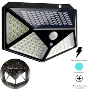 Luminária Solar Muro 100 Leds Solar Balizador Jardim Cor