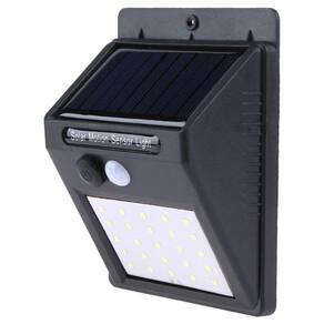 Luminária solar com detector de movimento e acendimento automático acionada pela intensidade de luz ambiente. Com autonomia de até 12 horas, grande intensidade de luz é destinada a áreas externas já que é a prova d água. Economia, praticidade e segurança em um mesmo produto. Material: plástico Cor: preto 25 leds Fonte de energia: solar Painel solar: 55w Bateria li-ion: 3,7v 1200mah Sensor noturno: 10 lux Sensor de movimento ângulo: 120º Distância do sensor: 5 metros : on/off Tipo de instalação: fixado na parede Importante: as bateria que acompanham o produto são uma cortesia apenas para teste. Por favor, troque por baterias novas para utilizar o produto. Instale a luminária a uma altura de 2 a 3 metros do chão, em um local onde a luz solar incida sem sombra ou bloqueios no painel solar. Fique atento: instalar a luminária a uma altura incorreta compromete sua eficiência. O tempo de exposição solar para a carga é de aproximadamente 3 horas, porém, nos primeiros usos, a luminária armazena menos energia, sendo necessário um tempo de exposição solar maior que 3 horas para as primeiras cargas. Após a instalação, ligue a luminária solar no botão para começar a utilizá-la. Importante: seu acendimento é automático pela intensidade da luz, mas seu acionamento é pelo sensor de movimento. Isso garante seu funcionamento nos momentos em que for necessário, sem desperdício de energia. Esta luminária ativa quando anoitece e permanece desligada até o acionamento pelo sensor de movimento, o que a torna ideal para balizamento de caminhos, jardim, corredores, etc. Trazendo mais conforto e segurança à sua residência ou comércio. Inclui 1 luminária solar 1 parafuso 1 bucha 1 manual Tamanho do produto: 12,5x10x5cm Tamanho da embalagem: 17x10x6 Peso: 0,175 kg Código do produto: gt511 Marca: Não Informado