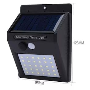 Luminária Solar Parede 30 Leds Sensor Movimento Fotocélula Luminária Solar 30 Leds Sensor de PresençaMovido A Energia Solar 30 LEDS Jardim Ao Ar Livre Quintal Parede Lâmpada Luz Sensor De Movimento À Prova D' Água TEMOS PRONTA ENTREGACaracterísticas do produto.1. Sem fios e fácil de instalação, sómente fixar na parede2. Solar-powered lâmpada de parede.3. Não trabalhar ainda é ligado durante o dia; apenas a luz fraca automaticamente quando ele está ligado; quando o sensor de presença.4. Diodo emissor de luz faixa de detecção do sensor com 5 metros e 120 graus de ângulo de detecção; IP65 À Prova D' Água, resistente ao calor, luz solar pode se adaptar a maioria das condições meteorológicas;5. Fornece luz para o seu jardim, pátio, do corredor, varanda, pátio ou na calçada. Especificações: Painel Solar: 0.55 w, 17% eficiência Bateria recarregável: 3.7 V 800 mAh Quantidade de LED: 30 LEDs Potência: 0.2 W/LED Material: ABS + PC Classe da proteção: IP65 Tempo de carregamento: 6 8 h Tamanho da luminária: 9,5 x 12,3 Marca: Shopbr