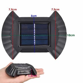 Cor: Preta Material: ABS Cor da Luz: Branco Frio Alimentação: Solar Potência: 5W Botão: On e Off Design moderno e discreto O tempo de duração varia de acordo com a carga