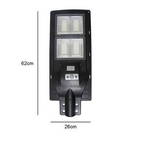 Com essa Luminária Solar 200W, você economiza a energia elétrica de sua casa ou de seu estabelecimento. Usando apenas a Energia Solar, ela gera uma energia capaz de iluminar um ângulo de 120 graus. Utilize em areas externas como garagens, postes, fazendas, lojas, hoteis e estacionamentos. Reduza seus custos com conta de Luz utilizando uma energia limpa e eficiente. De fácil instalação, a Luminária Solar não faz uso de fios e sua configuração é simples, realizada com o controle remoto. ATENÇÃO: POSTE DE FIXAÇÃO NÃO INCLUSO. ATENÇÃO: ANÚNCIO REFERENTE A 1 KIT COM 2 UNIDADES. ATENÇÃO: PILHAS INCLUSAS. Caracterísicas Material: Polipropileno Potência 200W Cor da Luz: Branco Frio Ângulo de 120 IP65 Vida Útil: 50000 horas Sensor de Proximidade Controle remoto com funcionamento até 15 metros 240 LEDs Controle inteligente de luz Fotovoltaico Longa duração de até 10 horas. Funções do controle: On/off Timing 2/4/6 horas Inducion: Luz acende com 100% e, ao sair do alcance do sensor, a luz cai para 20% por 15 segundos. Always: Luz sempre acesa até acabar a bateria. Conteúdo da Embalagem: 2 Luminárias 2 Placas 2 Controles Dimensões Aproximadas Luminária: Comprimento: 62cm Largura: 26cm Altura: 7cm 3 meses de garantia contra defeito de fabricação **2655kg Mod: HP-S02B 200W
