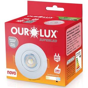 Especificações: - Potência: 3W - Tensão: Bivolt - Modelo: redondo - Temperaturade cor: 4000K - IRC:>80 - FLuxo luminoso: 230lm - Eficiência:> 80 lm/W - Vida útil: 15 mil horas - Garantia de 1 ano pelo fabricante - Não contém mercúrio - Não emite infravermelho e nem ultravioleta