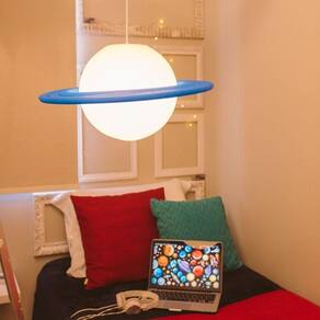A Luminária Saturno Rings traz o segundo maior planeta do sistema solar para iluminar e decorar de forma pendente qualquer ambiente escolhido. Por possuir boa intensidade de luz, a Luminária Saturno Rings pode ficar ligada a noite, sem atrapalhar ou prejudicar o sono. ; ;