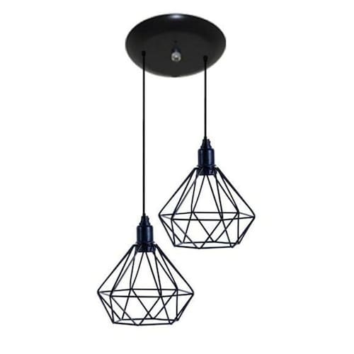 Luminária teto pendente aramado diamante preto 02 un Pendente aramado modelo diamante - 02 juntos- preto Ideal para sala de jantar, sala, quarto, área externa. Você poderá montar e regular os fios da maneira desejada. Descrição do produto e medidas: Produto em aço pintado Canopla - 14cm Fio preto, altura - 80 cm (regulável) Medidas - 18 cm de altura x 18 cm de diâmetro Soquete e27 Utiliza lâmpadas fluorescentes compactas (eletrônicas) ou led (lâmpadas não inclusas) Produto bivolt - 110v - 220v Pode ser instalado em forro de gesso, laje, madeira ou pvc Peso total: + ou - 1 kg
