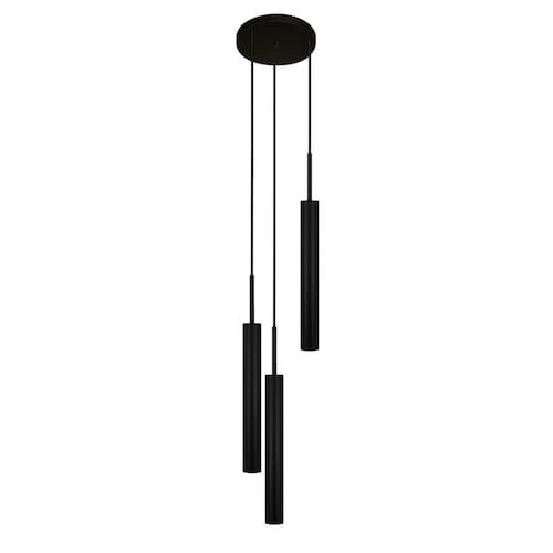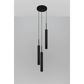 Luminária Teto Pendente Tubo Triplo Sala Quarto Cama Preto