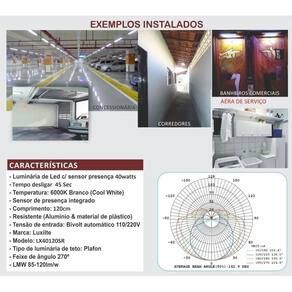 Luminária Tubular 40w 6500k Com Sensor Presença De 120cm Noite A luminária tubular de 40W com sensor de presença é ideal para uso em garagens, corredores e áreas de serviço. Disponível com dois modos de operação: um modelo com sensor de presença que acende dia e noite, e outro com fotocélula que acende apenas à noite ao detectar movimento.Descrição:- Lâmpada LED tubular de 40W, modelo T8, com 120 cm de comprimento, em cor branca com temperatura de cor de 6000K (branco frio).- O sensor de iluminação apaga automaticamente quando não há movimento, após um tempo de 45 segundos.- Cor: branco (cool white).- Com sensor de presença integrado.- Peso: 270 gramas.- Fabricada em alumínio e plástico, oferecendo alta resistência.- Potência: 40W LED, sem necessidade de reator.- Tensão de entrada: bivolt automático (110/220V), proporcionando maior versatilidade na instalação.- Produto profissional e super econômico, ideal para diversas aplicações em ambientes internos. Marca: Luxlite