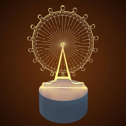 Luminária USB Roda Gigante 3D 18,1x12,5cm Luminaria 3D de LED - Luz Noturna Decorativa com Design Exclusivo Deixe o seu ambiente mais moderno e aconchegante com esta luminaria 3D de LED. Com um efeito visual impressionante, ela e perfeita para decorar quartos, escritorios, salas ou presentear alguem especial. Modelos disponiveis: Unicórnio, Globo Terrestre, Torre Eiffel, Cachorro, Roda Gigante e Clave de Sol. Cada modelo possui detalhes marcantes que ganham destaque com a iluminacao fixa em LED de cor amarela quente. Fabricada em acrilico transparente de alta qualidade com 2mm de espessura, a luminaria oferece um efeito tridimensional unico quando acesa, criando uma atmosfera confortavel e criativa. Especificacoes do produto: Altura total com acrilico: 20 cm Base: 10 cm de diametro x 4 cm de altura Cor da luz: amarela quente fixa nao muda de cor Material: acrilico + base plastica Fonte de energia: cabo USB incluso ou pilhas nao inclusas Conteudo da embalagem: 1 placa de acrilico com o design escolhido 1 base com LED fixo 1 cabo USB do vendedor: 1 mes contra defeitos de fabricacao Ideal para decorar e presentear com estilo e criatividade Marca: Não Informado