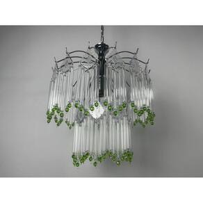 Descrição do Produto Lustre de Vidro com Cristais Acrílicos - Base Cromada com 2 Andares