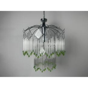 Descrição do Produto Lustre de Vidro com Cristais Acrílicos - Base Cromada com 2 Andares