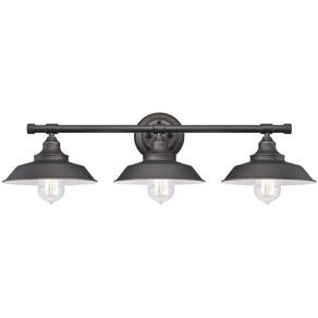 Westinghouse 6343400 Parede Iron Hill, 3 luzes, bronze polido a óleo com persianas brancas
