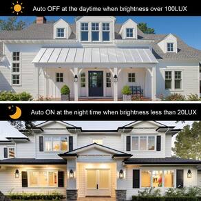 Iluminação externa do crepúsculo ao amanhecer, montagem na parede, perfeita para a iluminação da sua casa - Sensor de luz de alta sensibilidade do crepúsculo ao amanhecer: sensor de fotocélula de alta sensibilidade integrado, o suporte de parede para luminárias externas desligará automaticamente durante o dia quando o brilho ambiente for superior a 100 LUX, liga automaticamente à noite quando o brilho for inferior a 20LUX. Reduzindo muito o consumo de energia desnecessário, economize suas contas de eletricidade, torne sua vida mais conveniente - Antiferrugem e resistência às intempéries: Ao contrário de outros materiais metálicos baratos, as luminárias externas são compostas de liga de alumínio resistente. É altamente à prova d'água, antiferrugem e anticorrosão, pode suportar condições climáticas extremas sem nenhum problema, como tempestade, tempestade de neve, clima quente e assim por diante. Mesmo após anos de uso, as luminárias da varanda ainda podem manter sua aparência elegante e parecem novas - Sombra de vidro ondulado de água temperada exclusiva: construída com sombra de vidro temperado atualizada, nossa luminária de parede externa é estável o suficiente e durável. Não é fácil ficar crocante ou frágil. Além disso, com o exclusivo vidro ondulado de água, a iluminação externa LED do crepúsculo ao amanhecer refletirá uma luz mais suave e aconchegante para sua família, protegendo muito seus olhos da luz ofuscante, adicionando uma atmosfera acolhedora à sua casa - Soquete resistente ao calor E26 e design de fundo aberto - A lanterna de parede pode ser compatível com todas as lâmpadas de base E26 (MAX 100W). E para durar a vida útil das lâmpadas, equipamos as luminárias com soquetes resistentes ao calor, maximizando a proteção das lâmpadas. Além disso, para sua conveniência, projetamos esta luminária com fundo aberto, você pode instalar a lâmpada ou limpar a lâmpada facilmente, sem necessidade de desmontar (lâmpada não incluída) - Fácil instalação e ampla aplicação: Inclui todos os acessórios de montagem e uma ilustração detalhada, você pode levar apenas alguns minutos para concluir a instalação. Com o exterior popular e elegante, nossa arandela de parede externa pode ser amplamente utilizada na garagem, deck, varanda, porta, jardim, pátio, corredor, pátio, entrada... É uma escolha perfeita para a iluminação e decoração da sua casa
