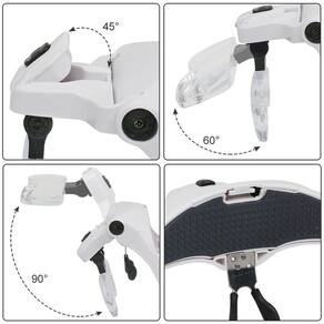 Lupa Cabeça Profissional Aumento Leitura Estética Eletrônica Artesanato Robótica A Lupa de Cabeça Profissional amplia objetos ou superfícies em até 3.5x. Possui apoio de nariz, ângulo das lentes e do LED ajustável para se adaptar à necessidade de cada um. Com 2 lâmpadas para auxiliar na observação de pequenos detalhes. Perfeito para leitura, costura, relojoarias, pintura, robótica, reparo de placas de computador e outras atividades que necessitam cuidados com detalhes. Acompanha 5 lentes de aumento que vai de 1.0x até 3.5x de zoom, e uma faixa elástica ajustável para cabeça. Lentes: 555mm (1.0X) 381mm (1.5X) 278mm (2.0X) 183mm (2.5X) 156mm (3.5X) Especificações Técnicas: Modelo: Lupa Cabeça Profissional Com LED 5 Lentes Material: Plástico de Alta Qualidade, Acrílico, Componentes Eletrônicos. Cor da Armação: Branco com Detalhes em Preto Alimentação de Energia: 3 Pilhas AAA (Não Incluso) Dimensões Aprox.: 6,5cm (Altura) X 20cm (Comprimento) X 14,5cm (Largura) Peso Aprox.: 70g Itens Inclusos na Embalagem: - 01x Armação Tipo de Óculos - 01x Faixa Elástica para Cabeça - 01x Caixa Organizadora das Lentes - 05x Lentes Acrílicas de Aumento - 01x Manual (Inglês)