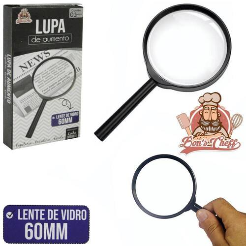 Informações adicionais:Ean: 7899866279933Validade: indeterminadaTamanho aproximado da lupa: 12,5x6cm 60mmTamanho aproximado da caixa: a:13,5xl:6,5cmPeso aproximado: 45gTipo de produto: lupa com lente na caixaCor: pretoComposição: plastico e vidro Marca: Bons Cheff