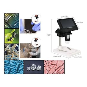 Lupa Conta-fio Microscópio Eletr. Digital 1000x Usb Tela 4.3 Lupa Conta-Fio Microscópio Eletr. Digital 1000X Usb Tela 4.3 Super microscópio digital de 50x à 1000x com display lcd colorido de 4.3 polegadas. Com este super microscópio você irá imagens incríveis como nunca imaginou. Produto desenvolvido com a mais alta tecnologia.Basta um simples clique ele captura a imagem mostrada .Produto ideal para usos profissionais das mais variadas áreas e também ideal para curiosos e para o lazer.Algumas das aplicações deste incrível microscópio são: Inspeção de peças e circuitos de computadores, Análises em têxteis, jóias, dinheiro, gráficas, filateria, perícias etc.Inspeção de materiais industriais, Inspeções em geral e muito mais.Vai com um suporte para ajudar a apoiar o microscópio. Tela colorida com 4.3 polegada permitindo que você veja instantaneamente todas as suas observações em detalhes e fornecendo-lhe uma visão com resolução 720 p/vga. Permite a captura de imagem com alta resolução (5 mp), seus 8 leds com ajustes de intensidade proporcionam uma iluminação perfeita independente da Possui suporte para facilitar o trabalho, podendo ser ajustado conforme altura dos materiais a serem trabalhados, facilitando o trabalho ao mantes as mãos livres. Apropriado para a inspeção industrial, eletrônica, têxtil, joias, impressão, etc. ESPECIFICAÇÕESQualidade da imagem: definição padrãoResolução: 720 p, vgaFaixa de foco: 0-3 cmDisplay: 4.3 polegadas com display lcdResolução da imagem: 5 mega pixelsQuantidade de led: 8 led brancoEscopo da iluminação: 0-30000luxControle de brilho: ajuste manualFonte de alimentação: usb dc 5 vInterface usb: usb 2.0Ampliação: 50x-1000x (manualmente)Tamanho da placa de base: 15.8 x 11.9 x 21.2 cmTamanho do item: aprox. 12 x 9 cmPeso do item: aprox. 434 gramasCor: preto brancoMaterial: metal e plástico CONTEÚDO DO PACOTE1 x Microscópio1 x Placa de Base1 x Pólo Metal1 x Suporte Ajustável1 x Cabo USB1 x Manual Do Usuário