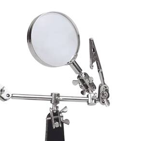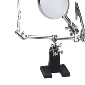 Suporte com ganchos tipo jacare ajustaveis em diversas direcoes.