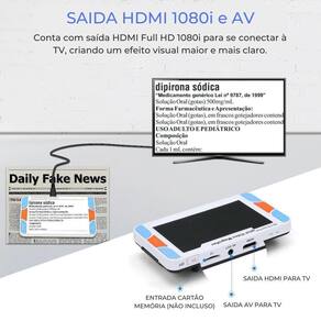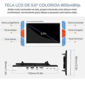 Não deixe a baixa visão prejudicar sua qualidade de vida. Com a vídeo lupa digital portátil tela 5,0 colorida, você pode ter uma experiência de leitura e escrita muito mais confortável. Com sua tela lcd colorida de alta definição de 5.0, câmera dupla e ampliação continuamente ajustável de 3x a 48x, esta lupa é perfeita para aqueles que precisam de ajuda para enxergar melhor. Além disso, ela possui 26 modos de cores para uma leitura ainda mais confortável e agradável.Com a bateria de lítio 2500mah recarregável, você pode usar a lupa continuamente por até 4 horas. E se você precisar de mais luz, o brilho do backlight e a intensidade da luz de preenchimento são ajustáveis. Congele a tela para facilitar a leitura ou use a cortina eletrônica para destacar o texto e evitar a interferência de luz.A vídeo lupa digital portátil também possui uma função de prompt de voz, lanterna e suporte para escrita. E se você quiser compartilhar imagens com outras pessoas, a saída de tv suporta saída hdmi 1080i 60 fps ou saída audio/video. Quando não estiver em uso, ela desliga automaticamente após 3 minutos.Com sua alça removível, a lupa é fácil de usar e confortável para transportar. Não deixe que a baixa visão atrapalhe a sua vida. Adquira agora a vídeo lupa digital portátil tela 5,0 colorida e tenha uma vida mais confortável e feliz.Detalhes técnicos:Tela de lcd 5.0 colorida de alta definição 800x480p.Câmera dupla, visualização tanto de longe quanto de perto.Ampliação continuamente ajustável de 3x-48x.26 modos de cores para melhor leitura.Bateria de lítio 2500mah recarregável, com uso contínuo de 4 horas.Brilho ajustável do backlight e intensidade ajustável da luz de preenchimento.Congelamento de tela: congela uma imagem de texto na tela para facilitar a leitura.Função de cortina eletrônica: destaca o texto horizontalmente e verticalmente para evitar interferência de luz.As imagens podem ser capturadas, salvas, lembradas e transferidas para um pc necessário cartão de memoria não incluso .Função de prompt de voz suportada 30 segundos .Função de lanterna.Saída de tv: suporta saída hdmi 1080i 60 fps ou saída audio/video.Suporte para escrita para ajudar a escrever.Desliga automaticamente sem uso por 3 minutos.Alça removível para uso confortável e fácil.Detalhes do produto:Dimensão: 150 l x 84 c x 30 a mm, 5,9 x 3,3 x 1,2 .Peso: 230g 8,5oz incluindo a bateria.Inclui:1 vídeo lupa digital portátil tela 5,0 colorida.1 bateria, 1 cabo de saída de vídeo.1 cabo hdmi.1 cabo de carregamento usb.1 adaptador de energia ac 110v-240v .1 manual do usuário.1 pano de limpeza.1 cordão.1 bolsa de transporte.1 bracket.