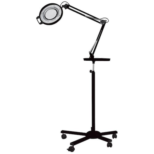Lupa Luminária Estética Led Alumínio Tripé Bandeja Estek PretoA Lupa LED Autovolt Estek possui lente de cristal que melhora a qualidade na visualização e iluminação a LED que economiza energia e ainda cria um clima agradável através da luz fria, pois não gera calor.Mais sobre o produto:A Lupa LED Autovolt Estek possui lente de cristal que melhora a qualidade na visualização e iluminação a LED que economiza energia e ainda cria um clima agradável através da luz fria, pois não gera calor. É fabricada em alumínio, o que permite leveza ao produto, manuseio simples e grande durabilidade, livre do processo de oxidação.Informações Técnicas:Aumento: 5 dioptrias 2,5x Tensão: AUTOVOLTPeso Líq. C/apoio: 2,130kg / Peso bruto c/Apoio: 2,830kg Peso Líq. C/tripé+bandeja: 7,650kg / Peso bruto c/tripé + bandeja: 8,440kgComprimento tripé: 65 cm/85 cmComprimento do braço: 103cmDiâmetro da lente: 125mmDiâmetro da cúpula: 24 cmMedidas da caixa: c/apoio - 80x30x20cm / c/tripé+bandeja - 80x30x30cm