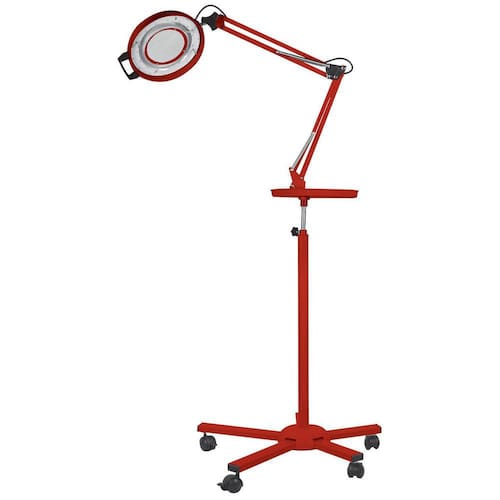 Lupa Luminária Estética Led Alumínio Tripé Bandeja Estek Vermelho A Lupa LED Autovolt Estek possui lente de cristal que melhora a qualidade na visualização e iluminação a LED que economiza energia e ainda cria um clima agradável através da luz fria, pois não gera calor.Mais sobre o produto:A Lupa LED Autovolt Estek possui lente de cristal que melhora a qualidade na visualização e iluminação a LED que economiza energia e ainda cria um clima agradável através da luz fria, pois não gera calor. É fabricada em alumínio, o que permite leveza ao produto, manuseio simples e grande durabilidade, livre do processo de oxidação.Informações Técnicas:Aumento: 5 dioptrias 2,5x Tensão: AUTOVOLTPeso Líq. C/apoio: 2,130kg / Peso bruto c/Apoio: 2,830kg Peso Líq. C/tripé+bandeja: 7,650kg / Peso bruto c/tripé + bandeja: 8,440kgComprimento tripé: 65 cm/85 cmComprimento do braço: 103cmDiâmetro da lente: 125mmDiâmetro da cúpula: 24 cmMedidas da caixa: c/apoio - 80x30x20cm / c/tripé+bandeja - 80x30x30cm