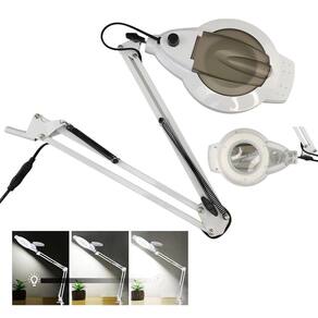 A lupa possui um suporte garra para fixar na mesa. Flexivel para mover em varios angulos, permitindo uma inspeçao detalhada.