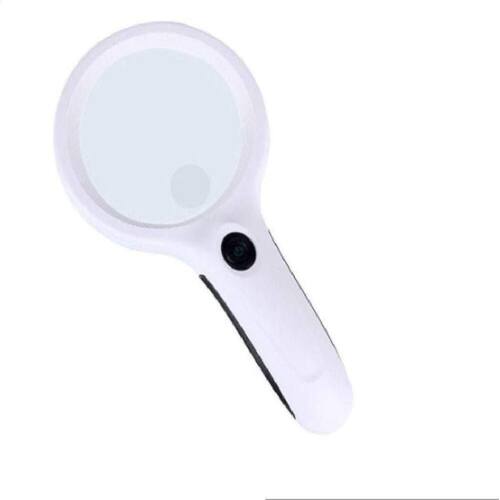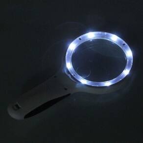 01 Mini Lupa de Mão 90mm com 8 LEDs Brancos e 1 UV