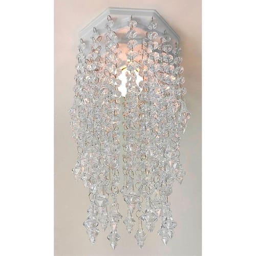 Com base plafon octogonal de 17 cm em acrílico na cor branca e altura de 27 cm, esse lustre é uma verdadeira obra de arte. Seus cristais de acrílico transparente e argolas de inox adicionam um toque de brilho e glamour ao ambiente.