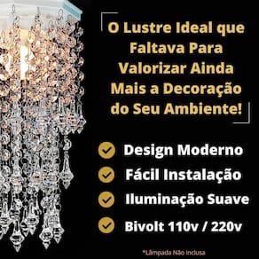 O Lustre Cristal Acrílico é perfeito para dar um toque de sofisticação e elegância à sua sala, quarto, corredor, escadas, hall, sala de jantar, varanda, espaço gourmet e até mesmo seu escritório. Com um design moderno e charmoso, ele ilumina muito bem qualquer ambiente.