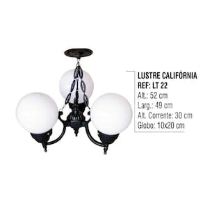 Lustre Colonial de Teto Califórnia Com Corrente em Alumínio Lustre de teto, ideal para condomínios, fazendas, sítios e residencias particulares em áreas externas e internas em geral. Pode ser utilizada em regiões praianas, pois não sofre ação da maresia. Ótimo custo benefício.