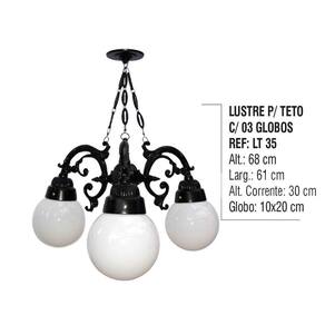 01 Lustre Colonial Para Teto Com Corrente em Alumínio 03 Globos