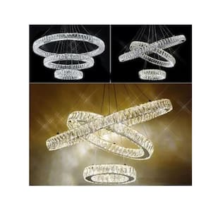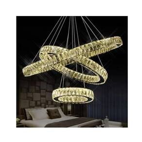 Lustre Cristal Moderno Led 3 Aros 50x30x18+controle sem fio.Medidas:1º Anel: 60cm de diâmetro2º Anel: 40cm de diâmetro3º Anel: 20cm de diâmetroAcompanha controle remoto sem fio.Prazo para postagem: 1 dia útil- Possui controle: Muda 3 cores (branco Frio, Branco Morno ou Branco Quente), liga e desliga- Voltagem: Bivolt (110V e 220V)