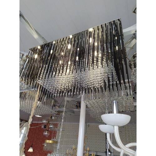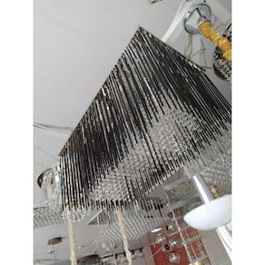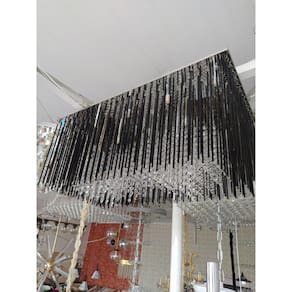 Lustre em cristal K9, retangular com Cristais k9 transparentes e detalhes laterais pretos. Comprimento 80 cm, largura 40 cm e 25 cm de altura. Capacidade para 15 lâmpadas G9.