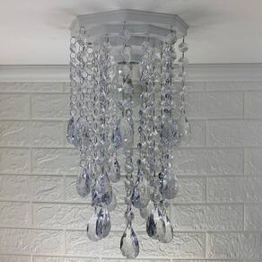 O lustre possui uma base plafon octogonal de 17 cm em acrílico na cor branca e uma altura de 31 cm.