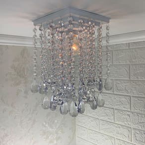 Feito com materiais de alta qualidade, este lustre apresenta cristais em acrílico de alto brilho e argolas de inox que não enferrujam. Além disso, sua base plafon quadrada de 19 cm em acrílico na cor branca e castanhas de acrílico transparente conferem um charme especial ao produto.