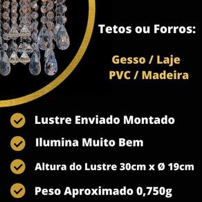 O lustre possui 19cm x 19cm x 30cm e peso de 740 gramas.